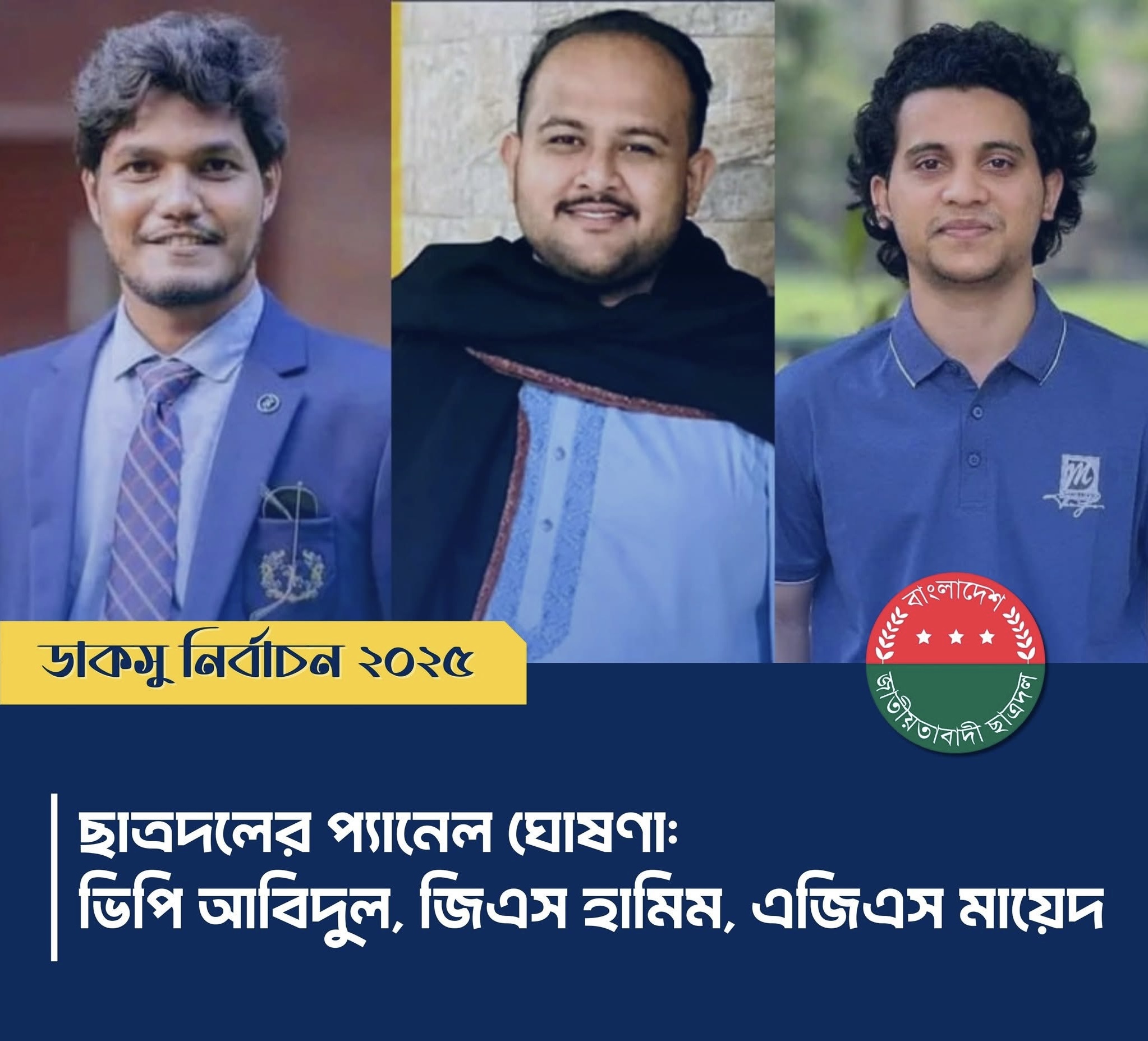 ডাকসু নির্বাচন ছাত্রদলের প্যানেল ঘোষণা: ভিপি আবিদুল, জিএস হামিম, এজিএস মায়েদ