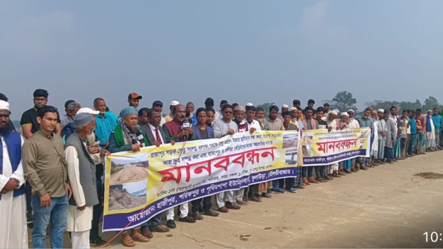মৌলভীবাজারের কুলাউড়ায় রাজাপুর সেতু রক্ষাসহ বিভিন্ন দাবিতে হাজীপুর, শরীফপুর ও পৃথিমপাশা ইউনিয়নবাসীর আয়োজনে মানববন্ধন অনুষ্ঠিত হয়েছে । শনিবার...